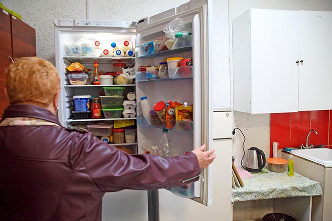 Заходим в мини-столовую, расположенную здесь же. Член Общественного совета журналист Вера Долженкова просит разрешения осмотреть холодильник. Цокает языком и не может удержаться от комментария: