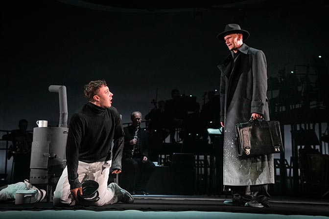 Тут труба воспроизводит музыкальную заставку перед началом левитановских сводок: «От Советского информбюро». И следом постановщики вплетают в канву пьесы голос Ольги Берггольц, именем которой говорил блокадный Ленинград. Услышали зрители и обращение Дмитрия Шостаковича к землякам, в котором он призывал их «защищать нашу замечательную музыку и самоотверженно работать».