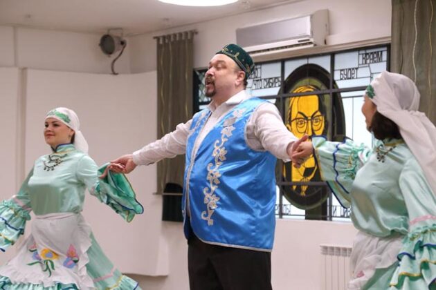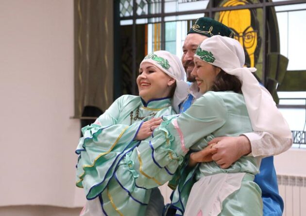 Концертная программа тем временем продолжалась. Как добрых знакомых принимала публика выступление научных сотрудников Томска и по совместительству артистов Маленького академического театрика. Танзиля Козлова (ИФПМ СО РАН), Танзиля Иванова (ИСЭ СО РАН) и Ильмир Насртдинов (ИОА СО РАН) исполнили татарский танец из спектакля 2018 года «Вокзал для своих». Правда, специально к этому концерту они его существенно дополнили и видоизменили. А помогла им в этом хореограф Лариса Быстрицкая.