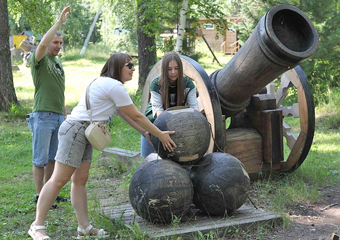 Пушка – копия XVII века вызвала интерес у военнослужащего Лутова. Гид рассказала о том, что сначала у орудия не было затвора, затем его смонтировали и стали стрелять холостыми залпами с помощью пиропатронов.
