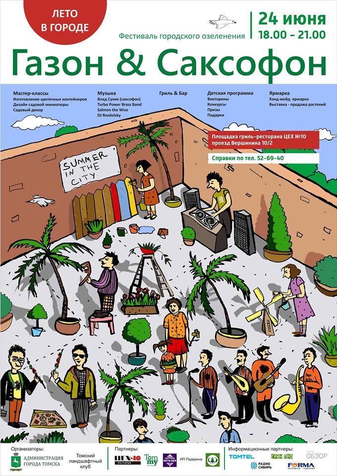 Для сведения: Партнеры фестиваля городского озеленения «Лето в городе. Газон & Саксофон»: ОГБОУ СПО «Томский лесотехнический техникум», ресторан «Цех №10», ИП Паздерина Н.Г. (питомник «Лазурь»), сеть цветочных салонов «Цветы & идеи», компания «Tommy giftsshop». Информационные партнеры: интернет журнал «Томский обзор», радиокомпания «Радио Сибирь», РА «Грин Про», компания «ТОМТЕЛ», рекламная компания «Forma».