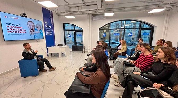 На площадке томского Штаба общественной поддержки Единой России прошла встреча-дискуссия на тему ценности семьи с участием активистов партии, молодогвардейцев и волонтёров-медиков, главным гостем которой стал общественный деятель и отец Александр Ковалёв.